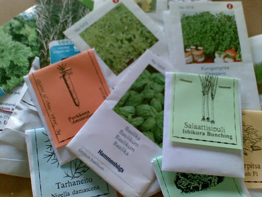Onpa ollut hienot ilmat viime viikonloppuina. Kasvimaan tonkijaa on hemmoteltu. Mainitsinkin jo huhtikuussa, että meitä onnisti ja saimme kuin saimmekin vuokralle Kaupungin viljelypalstan. Kokonaista puoliaaria omaa multaa! Viime sunnuntaina luin Hesarista, että olin kaiken lisäksi lähes julkkis tai ainakin trendikäs puutarhaharrastuksineni. 'Puutarhaan voi asennoitua monella tavalla: käytännöllisesti ruuan ja mausteiden tuottajana, esteettisesti, tieteellisesti lajivalikoimaa kartuttaen, filosofisesti ajatusten jalostajana ja tietenkin yleensä optimistisesti", kirjoittaa Seppo Turunen, Korkeasaaren johtaja, esseekokoelmassaan Paviaaneja, punaviiniä ja puutarhanhoitoa (Tammi). - Unelma puutarhasta Edellinen vuokralainen oli jättänyt palstan syystyöt tekemättä, joten aloitin viljelyharrastukseni kääntämällä viljelyalan huhtikuun 19. päivänä talikolla. Poistin niponuukasti kaikki vastaan tulleet juuret ja rikkaruohotuppaat. Olin lukenut, että kesällä olisi näin vähemmän kitkettävää. Istutin jo samana viikonloppuna 20.4 ensimmäiset siemenet: 1 1/2 neliötä naurista, yhden penkillisen (1x4m) porkkanaa ja yhden penkillisen härkäpapuja. Peittelin nauriit ja porkkanat neitseellisen valkoisella katekankaalla. Olen aina pitänyt näitä rumia muovikankaita rumina ja todennäköisen tarpeettomina, mutta nyt halusin tehdä kaiken oikein. Seuraavana viikonloppuna käänsin loput viljelyalasta ja istutin kaksi 4 metrin riviä perunaa (siikliä Prismasta), noin neliön verran pinaattia, kehäkukkia Sammakon kehoituksesta, ruiskaunokkeja ja auringonkukkia. Nauriit ja porkkanat itivät jo. Istutin seuraavan sadon nauriita. Meillä on tapana viikonloppuisin lähteä aamiaisen jälkeen ulos leikkikentälle. Poika väsyy keinumisesta, juoksemisesta ja hiekkaleikeistä päiväunille 11 maissa jolloin suuntaamme kasvimaalle. Herukkapensaan vieressä on mukava paikka nukkua päiväunia. En uskaltanut vielä vappuna istuttaa papuja ja muita "kun maan lämpötila on 8-10 astetta"-siemeniä. Istutin kuitenkin pienen alan lehtisalaattia ja salaattisipulia. Kitkin perinnöksi saamiamme monivuotisten kasvien penkkoja. Palstalla on neljä herukkapensasta ja kaksi penkkiä perennoja. Perennapenkit olivat kurjassa kunnossa ja annoinkin niille ns. isänkädestä. Nostin kasvit multappaakuineen maasta ja paransin penkin pohjan palstalla olleella valmiilla kompostilla. Istutin terhakkaimman näköiset juurakot takaisin penkkiin. Raivasin lisäksi herukkapensaat esiin rikkaruohojen seasta ja leikkasin vanhimmat oksat, joista osa oli ehtinyt jo kuolla. Viime viikonloppuna (vko 19) istutin loput siemenistäni kasvimaalle. Istutin penkillisen sokerihernettä, penkin kahta erilaista ydinhernettä, penkin pensaspapua, yhdeksän salkopavun siementä ja neljä daaliaa. Härkäpavut olivat alkaneet itää vasta viikolla 19 ja nekin hyvin epätasaisesti. Tein varmuuden vuoksi pienen täydennysistutuksen. Alkuviikoksi oli luvattu hallaa joten peitin istutukseni katekankaalla. Kesäkurpitsantaimet kasvavat vielä ikkunalaudan lämmössä. Alla kasvimaamme istutukset. Mittakaava on noin 5x10 metriä. | punaherukka | perenna | perenna | raparperi liljat | perenna, auringonkukka | perenna, auringonkukka | | pinaatti, Matador | kesäkurpitsa | kesäkurpitsa | | peruna, siikli | peruna, siikli | peruna, siikli | | peruna, siikli | peruna, siikli | peruna, siikli | | pensaspapu Vaia | pensaspapu Vaia | pensaspapu Vaia | | Ydinherne (Valma, Alderman) | Ydinherne (Valma, Alderman) | Ydinherne (Valma, Alderman) | | sokeriherne, Ambrosia | sokeriherne, Ambrosia | sokeriherne, Ambrosia | | härkäpapu, Vroma, pari Hangdownia | härkäpapu, Vroma | härkäpapu, Vroma | | porkkana, Amsterdam | porkkana, Amsterdam | porkkana, Amsterdam | | nauris, Purple top white globe | nauris, Purple top white globe | salaattisipuli, Ishikura bunching | | herukka | kehäkukka, ruiskaunokki | lehtisalaatti | | herukka |